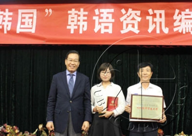 15号下午,第二届“精彩韩国”韩语编译大赛颁奖仪式在北京举行。韩国驻华大使权宁世向获奖选手颁发证书和奖品。此次比赛作为中韩公共外交领域的活动,旨在推动中韩两国民间的友好交流并增进理解。