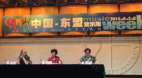 2015第四届中国—东盟音乐周当日晚间在南宁开幕,数百名来自东盟十国、欧美及日本、中国和港台地区的著名作曲家、理论家、演奏家们齐聚一堂,交流新作和艺术感悟,探索民族与西洋、传统与现代结合的多元化创作新路径。