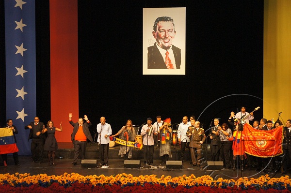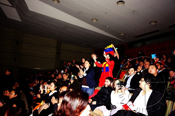 【公共外交网讯】3月5日,为纪念委内瑞拉最高统帅乌戈•查韦斯逝世两周年,委内瑞拉驻华使馆在北京世纪剧院举行了一场精彩纷呈的音乐会。参加音乐会的有中国政府各部门代表、多国驻华使馆外交官、学术文化界代表、友好协会和企业界代表、委内瑞拉在华学生及公民等,整个剧场座无虚席。