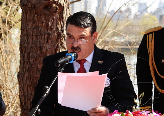 【公共外交网讯】2015年3月23日上午,玻利维亚“海洋日”纪念活动在北京朝阳公园国际友谊林举行。玻利维亚驻华大使吉列尔莫·查卢普·连多,中国外交部、国防部领导代表,中外现任、前任外交官及社会各界人士共百余人出席了活动。