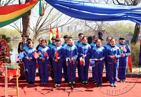 在纪念活动上,白家庄小学学生朗诵了诗歌《我渴望给玻利维亚一片海》,大峪中学西班牙语班学生演唱了玻利维亚歌曲《收复海洋之歌》,孩子们满怀真情的演出,均表达了玻利维亚人民对出海口的渴望,感染了在场的每一个人。