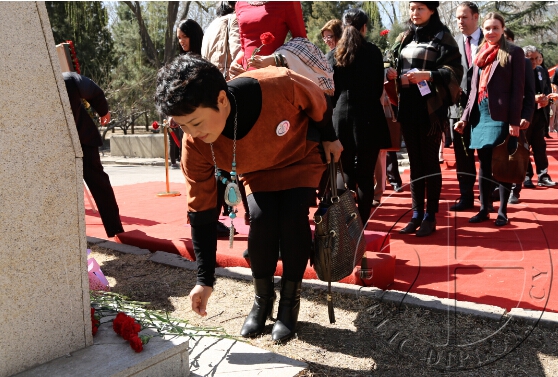 公共外交中心副会长曲真女士向英雄纪念碑及画像献花