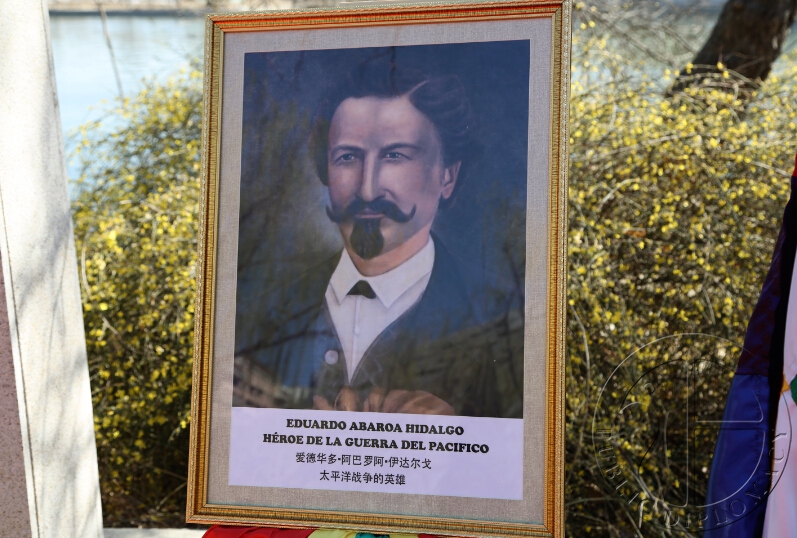 及南美太平洋战争英雄爱德华多·阿巴罗阿·伊达尔戈画像献花