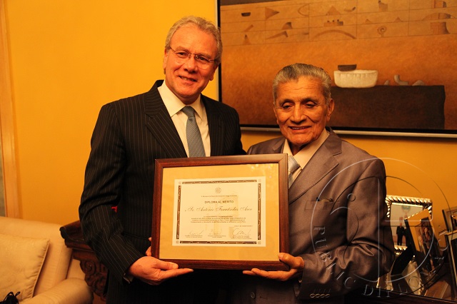 阿尔赛先生表示,“当秘鲁驻华大使把表彰证书交到我手里时,让我想起了40多年前秘鲁和中国建交过程的艰辛,我本人很高兴见证了这一历史性的时刻”。阿尔赛先生作为新闻工作者,曾于70年代初担任传递中国秘鲁建交信息的秘密特使,之后担任秘鲁驻华商务代表处的顾问,为1971年11月中秘两国建交做出了特殊的贡献。