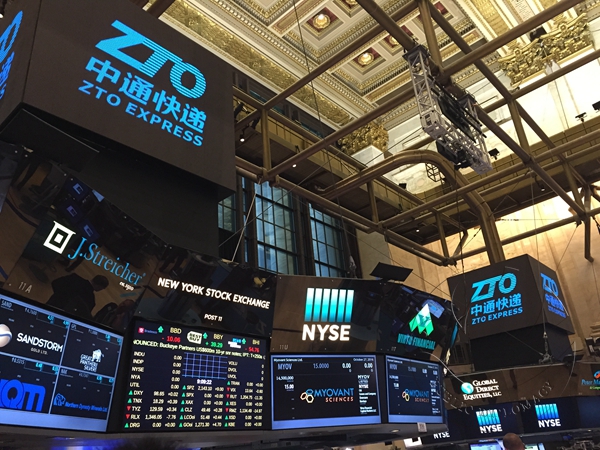 美国当地时间10月27日,中国快递企业中通快递在纽约证券交易所正式挂牌交易,股票代码为ZTO。发行价格19.5美元,融资规模约14.5亿美元。该宗首次公开募股(IPO)有望成为继 阿里巴巴 2014年250亿美元IPO之后,最大规模的中国企业赴美IPO,也有望成为2016年美国市场最大的IPO。