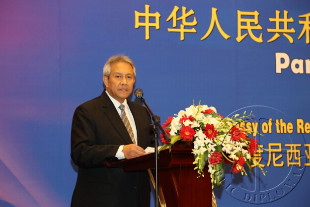 印尼驻华大使苏更·拉哈尔佐在致辞中首先回顾了中印尼建交的历史:65年前,印尼与中国刚从世界长期冲突的笼罩中解脱,经济处于低谷,两国都在为建设一个稳定和持续性发展的国家而努力奋斗着。中印尼两国政府就在共同理想的基础上建交,并为创造一个更加安全的亚太地区,使印尼和中国人民能够生活的更加繁荣和安宁建立起了密切合作。