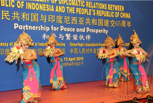 【公共外交网讯】4月13日晚,主题为“和平与繁荣伙伴”的中印尼建交65周年庆祝招待会在北京凯宾斯基酒店隆重举行,招待会由中国人民对外友好协会与印度尼西亚驻华使馆共同举办。中国全国人大常委会副委员长向巴平措、印尼驻华大使苏更·拉哈尔佐、中国人民对外友好协会副会长林怡以及中联部、外交部、国防部等相关单位负责人,部分国家驻华使节及中印尼友好人士、媒体代表约400人出席。