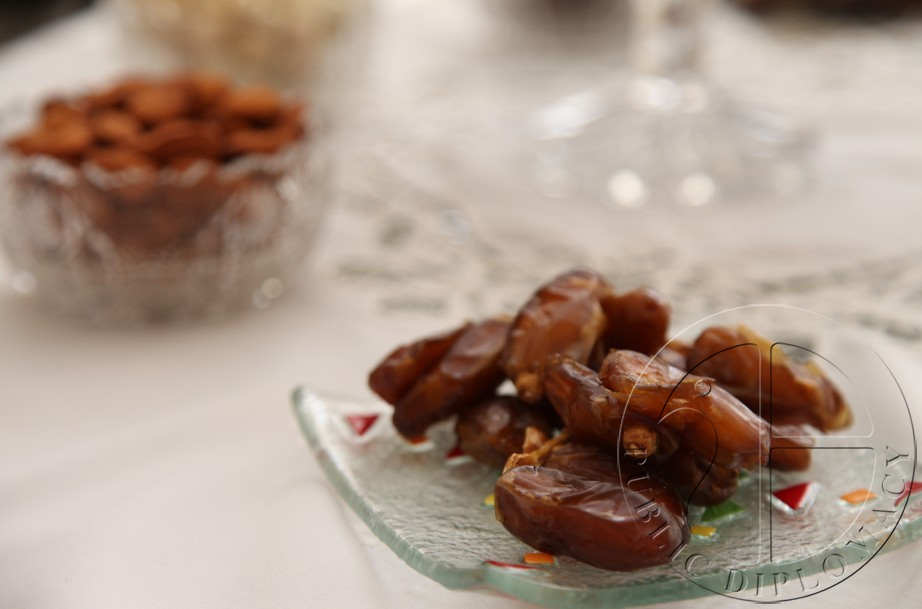 与拉贝希大使的谈话于是从椰枣开始。据大使介绍,椰枣是种植于西亚、北非等地的一种常绿乔木——枣椰的果实,营养价值极高,被誉为“沙漠面包”。但唯阿尔及利亚出产的椰枣最甜,阿拉伯半岛其他地区种植的很难望其项背。大使还介绍到,阿尔及利亚种植的蔬菜、水果都是纯天然的,十分健康;由于气候与土壤原因,阿尔及利亚的红酒也非常有名,早年法国人甚至从阿尔及利亚引进葡萄回法国本土种植,却无法酿造出阿尔及利亚出产的那般香醇的红酒。