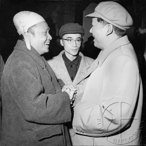 1956年11月4日毛主席会见吴努主席(左)。中为程瑞声