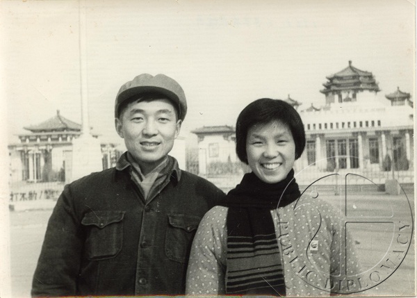 1967年冬,吴建民、施燕华夫妇在北京农展馆前拍的结婚照