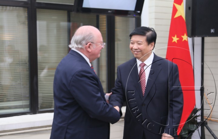 中国国土资源部部长姜大明像施密特大使表示祝贺