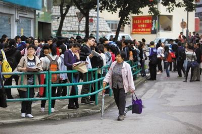 2012年12月1日早晨,香港一处SAT考场,考生在等候进场。