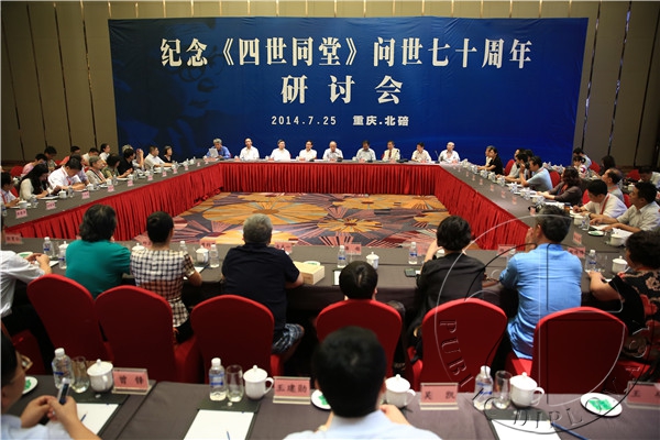 自1944年起,老舍先生在重庆北碚开始创作长篇小说《四世同堂》。为纪念这部作品问世70周年,由中国公共外交协会、中央文史研究馆、中国老舍研究会共同主办的专题研讨会日前在重庆市北碚区举行。中国公共外交协会会长李肇星、中央文史研究馆副馆长冯远、中国老舍研究会会长关纪新、重庆市政协副主席何事忠及中外学者60余人与会研讨。