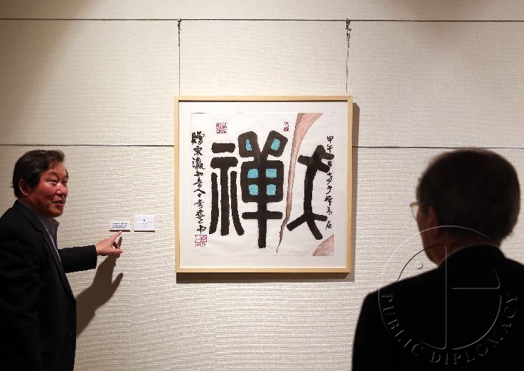 日前,在日本东京,观众在欣赏展出的作品。当日,“现代中国·国画展——写意画与齐白石和他的弟子们”在东京开幕。本次展览正值中国艺术大师齐白石诞辰150周年,共展出“齐派”多位名家的绘画、篆刻、象牙雕刻作品两百余件。