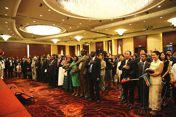 南苏丹驻华大使迈克尔·米利·胡赛因在招待会上发表致辞称,作为世界上最年轻的国家,尽管南苏丹正在经历着危机,但政府正致力于维护安全稳定和提供有效的社会服务,并有信心用和平的方式解决国内分歧,早日结束冲突恢复和平稳定,让人民获得更好的生活。他说“尽管挫折险阻,但是在地区和国际社会的支持下,通过坚持不懈的齐心协力,我们仍然对实现和平充满乐观。”
