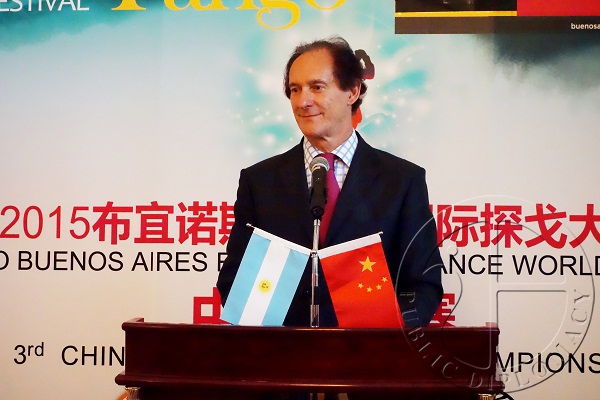 发布会上, 阿根廷驻华大使古斯塔沃·马蒂诺和中国阿根廷探戈协会会长许暄宜分别发表讲话。他们表示,近年来,在多方的支持和积极宣传推广下,阿根廷探戈在中国发展迅速。中国探戈舞者水平不断提高,并在国际舞台上开始崭露头角。探戈在中国也已经不仅限于舞蹈的发展,更多的爱好者开始了解和关注研究探戈的文化内涵。