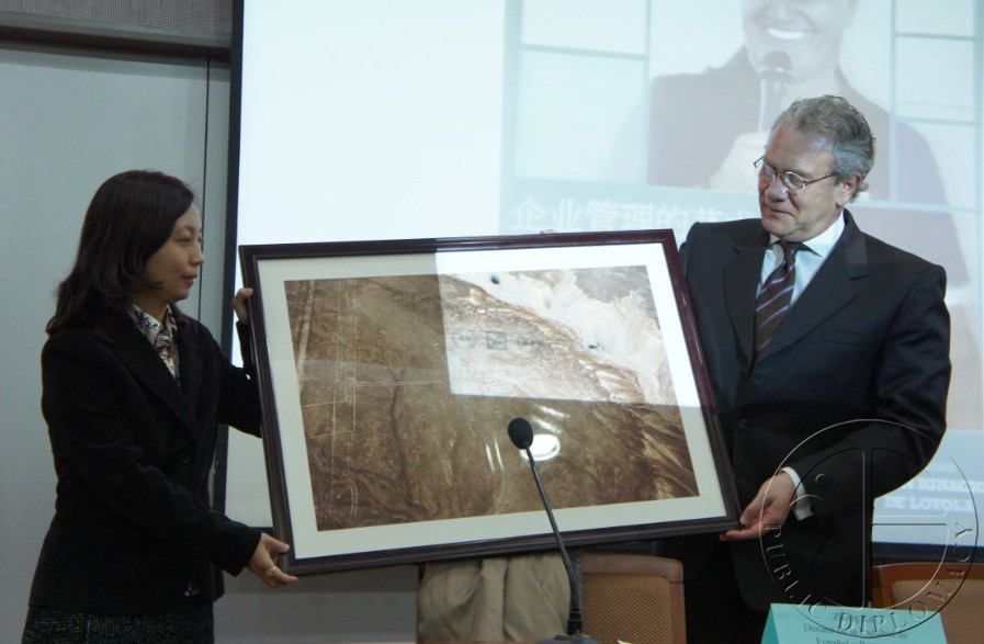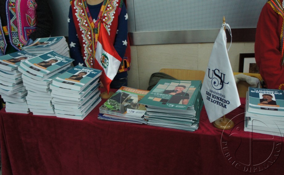 此外,秘鲁驻华大使贡萨洛•古铁雷斯•雷内尔向北京第二外国语学院西葡语系赠送了秘鲁民族特色画作,以感谢他们在推动秘中教育交流方面的努力。(文/公共外交网记者黄瑜蓉)