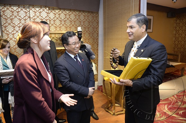 公共外交文化交流中心向科雷亚总统赠送用其肖像画烧制的中国瓷盘