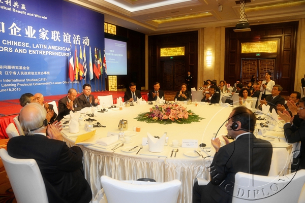 辽宁中天集团、葛洲坝能源重工有限公司、北京远洋中科新材料有限公司等部分企业家代表发表讲话,介绍了本企业情况和开展同拉美合作的设想。随后,与会企业家代表与拉美驻华使节进行互动交流,询问及探讨了相关国家投资环境、投资政策、市场分析等问题。