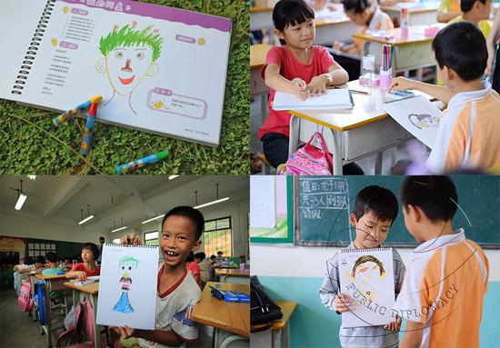 A:在调研过程中,中堂小学的高老师和我们分享到他们学校一共只有16个老师,并没有专门教授美术的老师,都是他们兼职上美术课的。另外,我们也发现部分乡村美术教师会有一种观念:我不是美术专业毕业的,自己也不会画画,怎么教孩子呢?自己有一桶水,才能为孩子倒一杯水。因此这些教师在教学中会不自信,觉得在引导学生画画上会特别困难。而部分学生也反映,希望教师上美术课时不要那么严肃,甚至觉得教师太凶了。所以,我们在设计课程时,特别注重指引教师如何引导学生创作和课程的趣味性,也考虑到“兼职教师”的情况,把语文句式和数学图形通过美术表达出来。