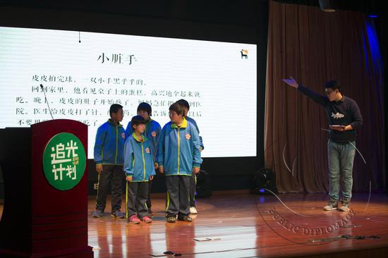 “追光计划”是由北京虹瞳文化传播有限公司旗下品牌“指鹿文化”发挥自身优势,从2016年年初开始联手北京市平谷区特教中心开发的一个项目,旨在将教育戏剧运用到特殊教育领域,以特教学校为基础,向家庭、社区等社会领域推广,以期通过戏剧表演的形式帮助心智障碍者学习与康复,增强他们融入社会和参与就业的能力。