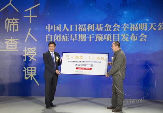 在第十个“世界自闭症日”来临之际,东方启音联合中国人口福利基金会幸福明天专项基金,面向全国主要十个城市发起“万人免费筛查·千人免费授课”自闭症早期干预公益计划。4月2日上午,北京马可孛罗酒店三楼北京厅,中国人口福利基金会秘书长助理兼社会联络部部长宋宏云先生、新浪公益杨光先生、东方启音总裁姚秋武先生、美国自闭症机构SAS机构创始人Joel Arick博士、澳大利亚纽卡斯尔大学言语病理学院长、国际言语康复治疗专家Sally Hewat、原创音乐人、自闭症歌曲《星星的爸爸》作者华子等重要嘉宾及领导共同出席发布会,随着主会场蓝色星星形状启动台被点亮,标志着“万人免费筛查·千人免费授课”自闭症早期干预公益计划正式启动。中国人口福利基金会志愿者张霄、著名电视节目主持人刘小唯倾情联手主持此次发布会。