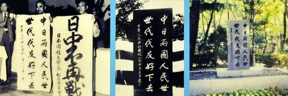 1962年10月,中日举行“友好碑文交换大会”,“日中不再战”和“中日两国人民世世代代友好下去”两块碑文分别树立在中国杭州市和日本岐阜市。此举首开战后中日民间和平友好之先河,充分表达了中日两国人民反对战争、热爱和平、祈愿中日世代友好的共同心愿。