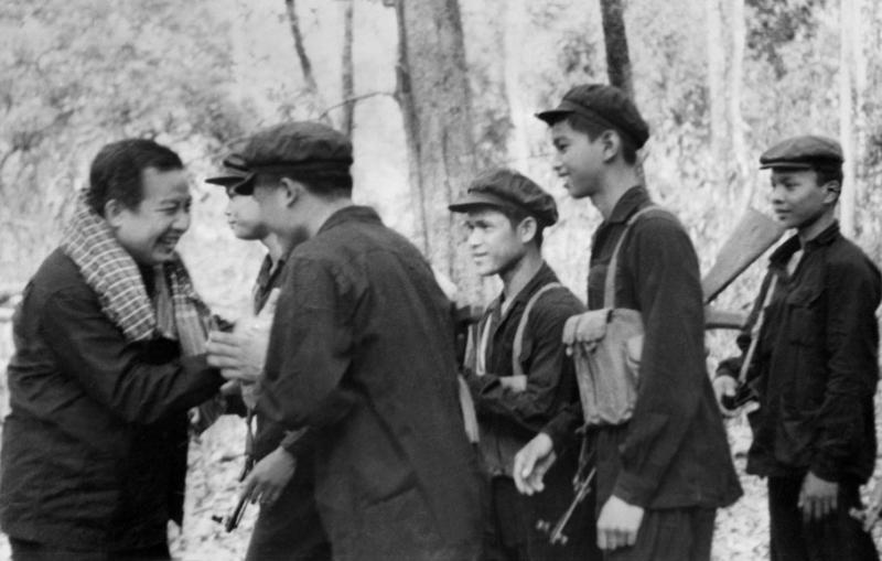 1973年4月19日,西哈努克看望在吴哥窟丛林里的士兵。