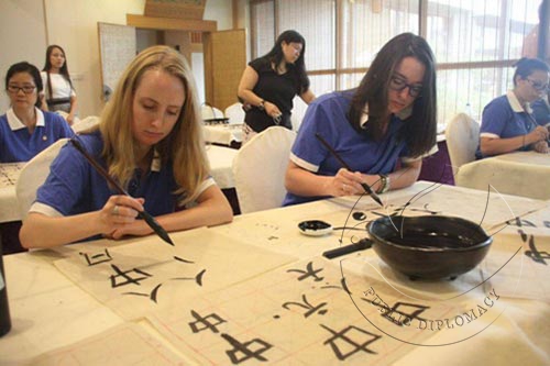 美国学生们从学习拼音和汉字到参观长城、故宫、颐和园和天坛等名胜古迹,亲自体验北京这座古老城市的文化底蕴和历史气息。他们走进国家博物馆、观看中国功夫表演、体验国粹京剧,制作手工皂、参加手拉手互动,让公益和爱心跨越国际温暖心间。他们体验书法、绘画、太极、茶道等中华文化的精髓。
