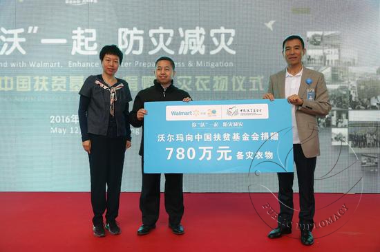 沃尔玛中国公司事务高级副总裁付小明在本次捐赠仪式上表示:“在全球范围内,随着各种灾难的严重性和发生频率的增加,沃尔玛正在与多家机构合作, 将我们应对灾难的重点工作扩大,除了提供救助,还加强备灾及提高社区在灾难发生前的防范能力。此次捐赠备灾衣物正是沃尔玛积极响应中国政府号召、参与备灾体系建设的具体举措。”