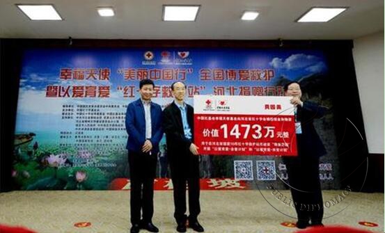 由民革中央、中国红十字会总会等单位指导,中国红十字基金会幸福天使基金联合爱心企业贝因美等有关单位开展的幸福天使“美丽中国行”全国博爱救护暨以爱育爱“红十字救护站”河北捐赠行动在保定市涞源县白石山村爱心起航。全国人大副委员长、民革中央主席万鄂湘继2015年5月18日来到河北保定调研精准扶贫工作一年后,再次来到涞水之源的国家级贫困县涞源县白石山村,携手中国红基会幸福天使基金通过河北省红十字会为河北捐赠价值1473万元现金和物资,用于在白石山、承德避暑山庄、野三坡、清西陵、山海关、天下第一城等10个旅游景区援建“红十字救护站”,并为景区培训1500名红十字应急救护人员;在涞源县白石山村建设“博爱家园”;在河北省开展“以爱育爱·金童计划”,为1000名贫困家庭新生儿进行先天性重大疾病健康筛查,开展“以爱育爱·扶贫计划”,帮扶0-6岁贫病婴童成长营养所需。