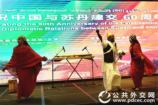 【公共外交网讯】2019年3月29日晚,中国与苏丹建交60周年庆祝招待会在北京凯宾斯基酒店举行。苏丹驻华大使艾哈迈德·沙维尔,全国人大常委会副委员长、中国阿拉伯友好协会会长艾力更·依明巴海,全国对外友协副会长林怡,多国驻华使节,苏丹在华侨民等中外来宾500余人出席。