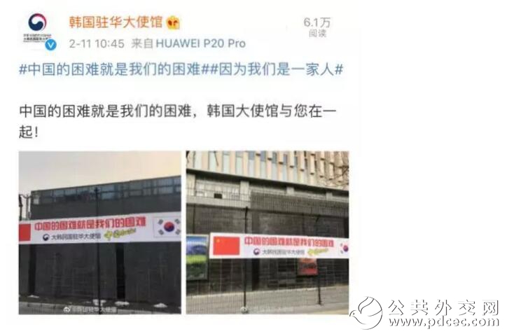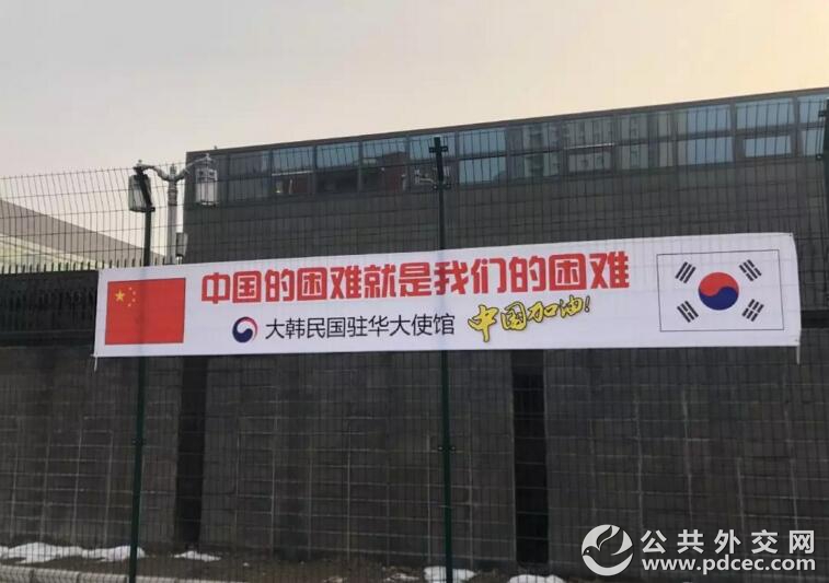 韩国驻华使馆打出横幅:中国的困难就是我们的困难,中国加油!