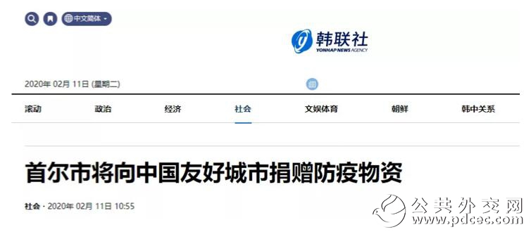 韩联社11日最新消息称,首尔市政府当天表示,将向北京、重庆等中国12座城市提供6亿韩元(约合人民币353万元)规模的援助物资,助力中国抗击新冠肺炎疫情。
