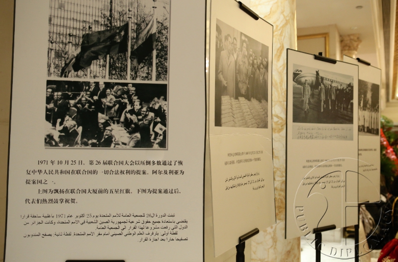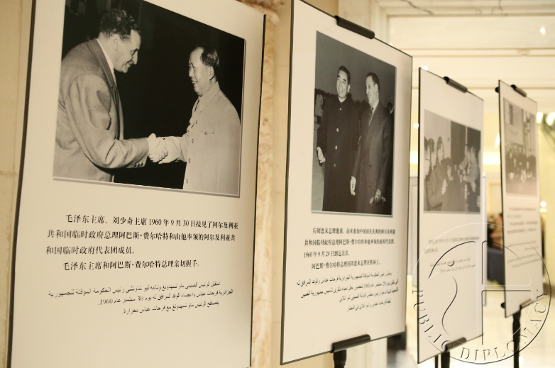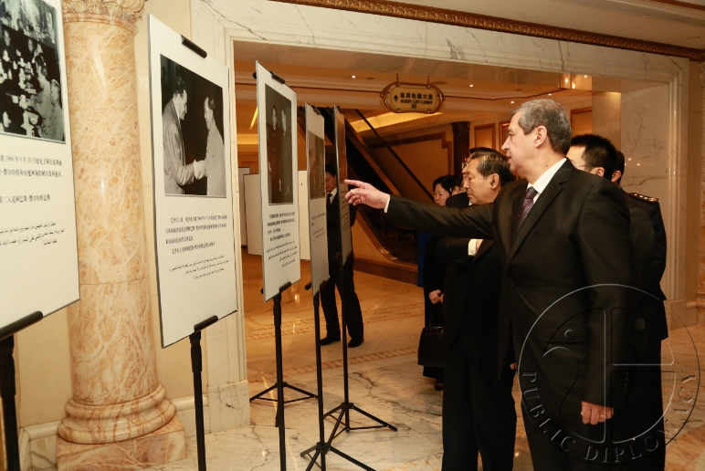 全国政协副主席齐续春与阿尔及利亚驻华大使哈桑纳·拉贝希一同观看中阿关系发展照片墙