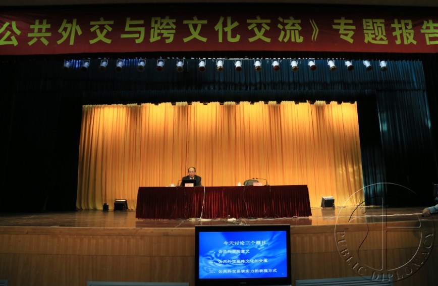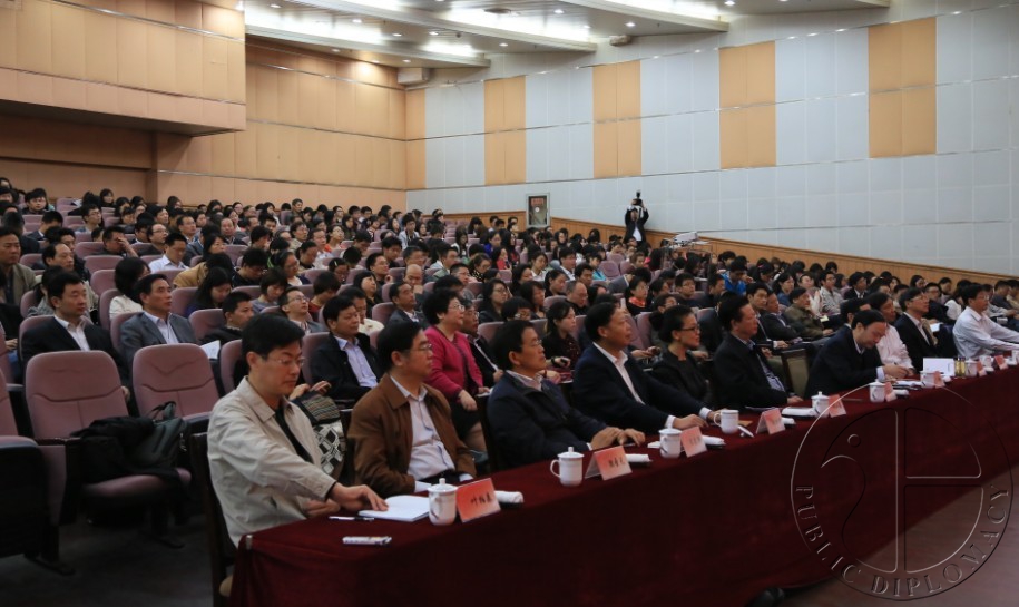 讲座围绕三部分展开,即公共外交的内涵与外延,公共外交与跨文化交流,公共外交需要公众参与。赵启正首先谈到,公共外交在各国的定义和目标都不一致。美国将公共外交定义为“由政府发起的对外宣传,通过电视、网络等新型信息手段传播、了解、获悉和影响外国舆论,提升美国在外国公众中的形象和影响,从而增加本国的国家利益”;而日本则认为公共外交是“在国际社会提高本国存在感,为提升本国形象,加深外界对本国理解,以对象国国民而非政府为对象去做工作的外交活动”。然而不论何种差异,公共外交都是国家表达软实力的有效途径与场所,其目的为提升本国形象,改善外国公众对本国态度,进而影响外国政府对本国的政策。中国公共外交的基本任务是想世界说明中国,帮助外国公众认识和理解真实的中国。赵启正特别谈到中美公共外交方式的不同之处,指出美国在宣传美国价值观的同时往往批判或干涉别国观点;而中国公共外交更注重表达中国与别国的发展和友谊,并且有“内外双修”的作用,即对外表达中国,增强中国在国际社会中的话语权,对内启发民众,促进公民提高文化素养。