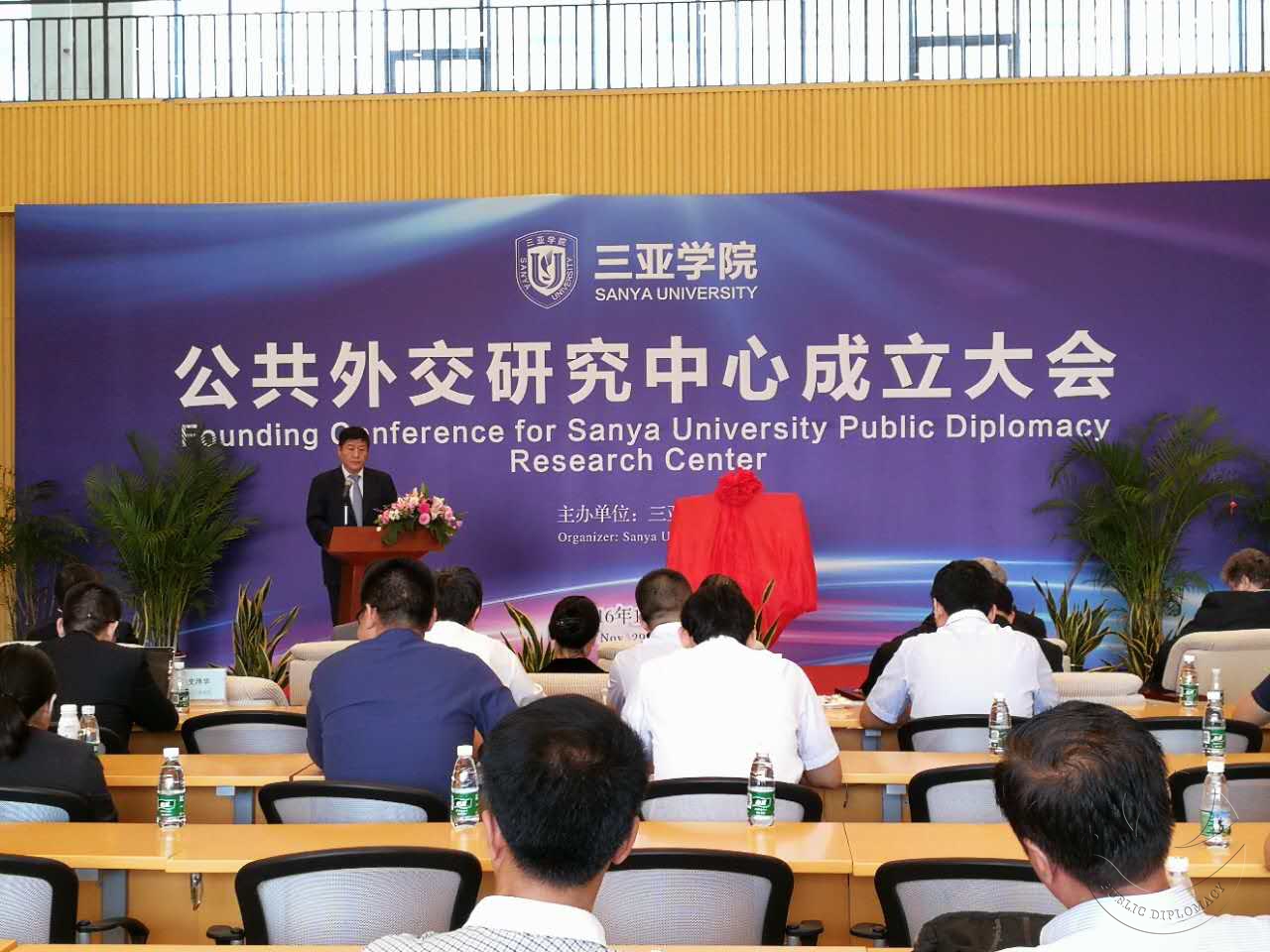 11月29日,三亚学院公共外交研究中心成立大会系列活动开幕,察哈尔学会秘书长、高级研究员、中国驻法国斯特拉斯堡前总领事张国斌出席此次成立仪式。