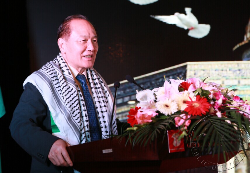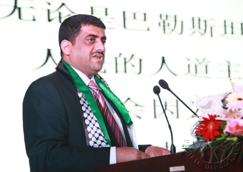 巴勒斯坦驻华大使哈迈德·拉马丹在纪念活动中发表讲话