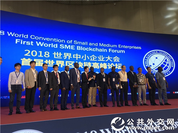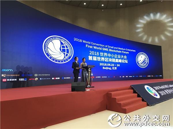 【公共外交网讯】2018年6月23至24日,由中国中小商业企业协会等单位联合主办,联合国工业发展组织、中国人民对外友好协会、一带一路智库合作联盟等单位支持的“2018世界中小企业大会”在北京雁栖湖国际会展中心举办“世界区块链高峰论坛”。来自30余个国家和地区800多名区块链领域的各界人士参与论坛。世界区块链技术论坛筹委会会长朴基业致开幕词,利比里亚总统乔治·维阿向论坛开幕发表书面贺词,联合国前秘书长潘基文向论坛闭幕发来闭幕词。中国中小商业企业协会特邀副会长徐国权、日本中小企业协会理事长Yutaka Kitamura等来宾出席开幕式并致辞。