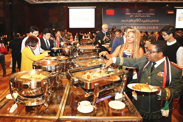 【公共外交网讯】2016年1月13日晚,为庆祝苏丹共和国独立60周年,苏丹驻华使馆在北京千禧大酒店朝阳厅举办庆祝招待会。苏丹驻华大使欧玛尔·伊萨·艾哈迈德、中国全国政协副主席陈元、苏丹运输和路桥部长马卡维·穆罕默德·阿瓦德、苏丹财政部国务部长阿卜杜勒·拉赫曼·达拉尔、驻华外交官、媒体、企业代表、苏丹在华侨民等三百余人出席招待会。