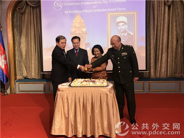 【公共外交网讯2018117日,柬埔寨王国驻华大使凯西索达在北京举办招待会,庆祝柬埔寨王国独立和建军65周年。中国全国人大常委会副委员长王东明、中国人民解放军陆军装备部部长高波少将、外交部副部长孔铉佑等中方嘉宾出席活动。