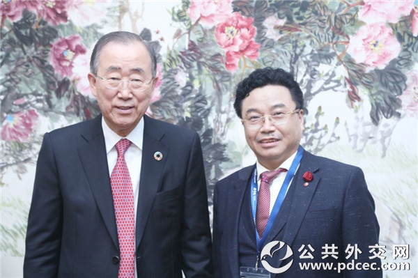 应邀出席活动的公共外交文化交流中心会长马振轩等与会嘉宾,在论坛期间与潘基文进行了亲切友好的座谈。