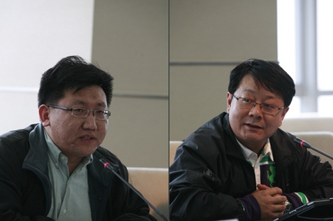 清华大学副教授赵可金左和北京师范大学教授张胜军在论坛上发言