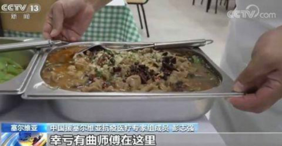 据央视报道,为减少中国专家生活上的不适,塞尔维亚国防部特意找到了一个会做川菜的山东厨师。
