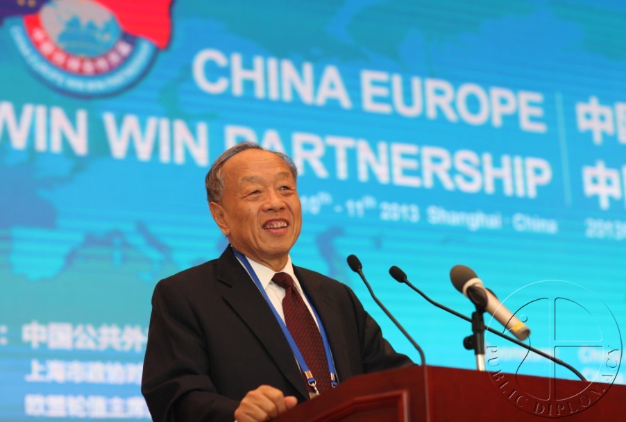 【公共外交网讯】10月10日上午9时,由中国公共外交协会、国家开发银行主办的“中欧伙伴合作共赢,中国企业走进欧洲”论坛在上海国际会议中心开幕。来自中欧双方政府、学界、企业界近300人与会,国务委员杨洁篪发来贺信与重要指示,中国公共外交协会会长李肇星出席开幕式并致辞。上海市副市长周波、外交部副部长翟隽、国开行副行长李吉平到场并发表演讲。