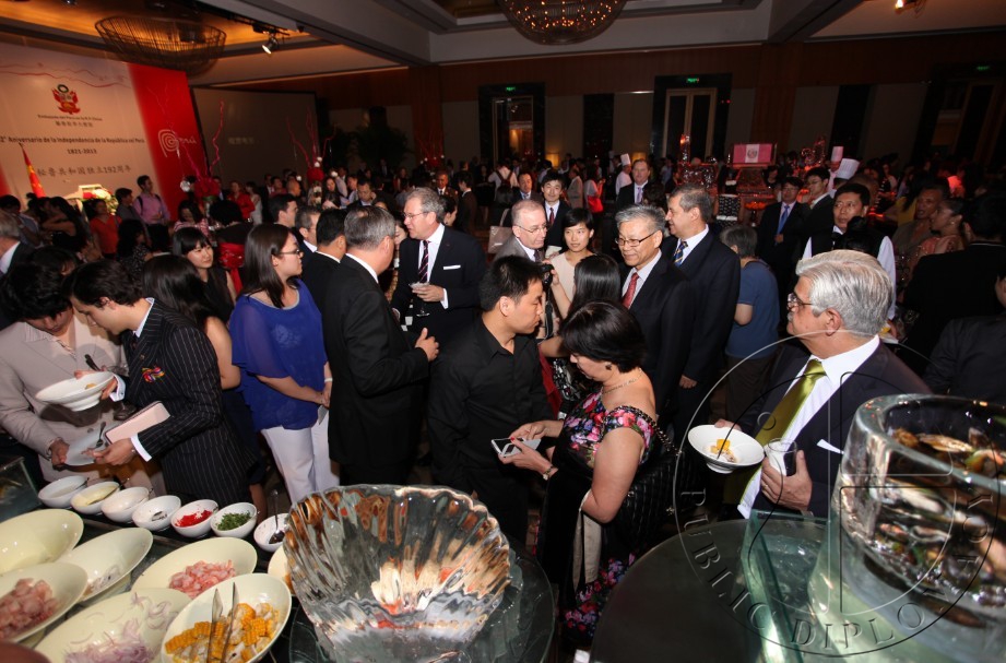 【公共外交网讯】7月25日,秘鲁共和国独立192周年国庆招待会在北京金融街威斯汀大酒店隆重举行,秘鲁驻华大使贡萨洛•古铁雷斯•雷内尔用充满浓郁拉美风情的秘鲁美食款待中外来客,同时也为秘鲁美食节登陆北京拉开了帷幕。
