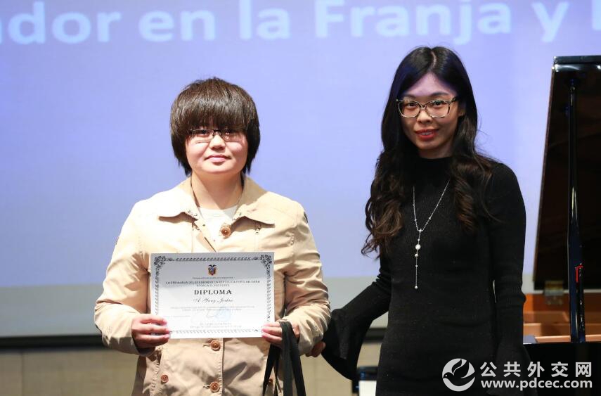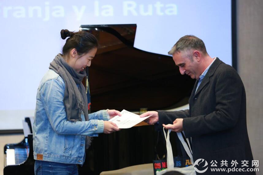 厄瓜多尔驻华使馆官员为五位第八届全国高校西班牙语征文比赛的优胜者颁奖