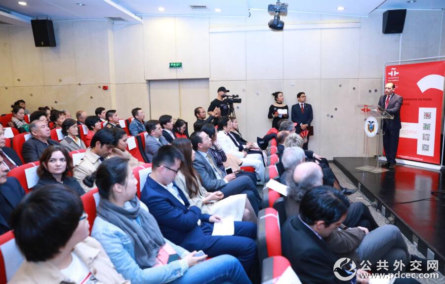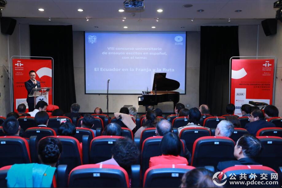 【公共外交网讯】2018年10月17日晚,第八届大学生西班牙语征文大赛颁奖典礼在北京塞万提斯学院举行。颁奖典礼由塞万提斯学院院长易玛·冈萨雷斯女士主持,厄瓜多尔驻华大使卡洛斯·达维拉、拉美多国驻华使馆官员、中国前驻拉美国家外交官,西语国家侨民及西语文化爱好者等百余人出席。