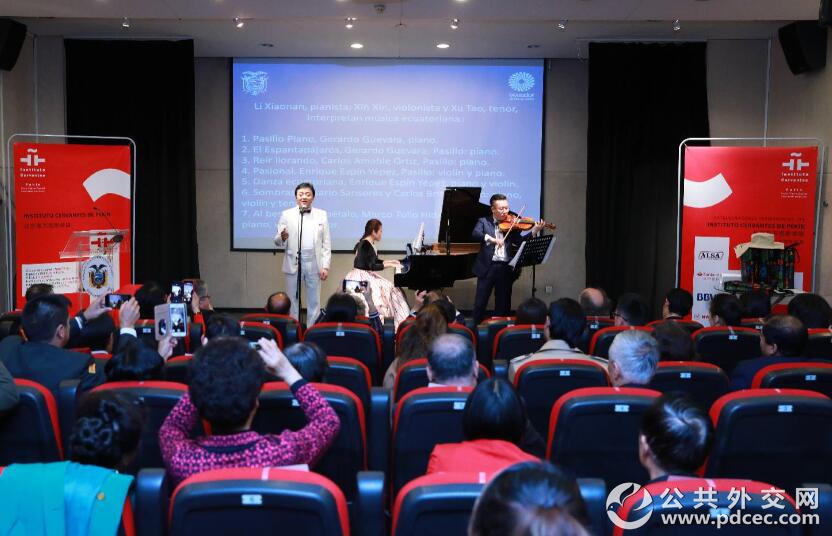 随后,李晓楠,辛欣和徐韬为现场观众带来了精彩的音乐会,演奏和演唱厄瓜多尔七首著名的钢琴曲、小提琴曲和歌曲。