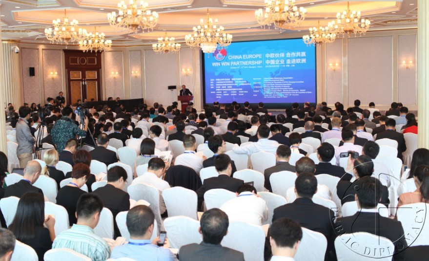 【公共外交网讯】10月10日至11日,为服务中国企业到欧洲投资、合作,搭建中欧经贸合作交流平台,中国公共外交协会联手国家开发银行举办以“中欧伙伴,合作共赢”为主题的“中国企业走进欧洲”论坛。中欧双方政府官员、专家学者及企业代表近300人与会并就欧洲宏观经济形势、投资政策及法律、企业公共外交等议题展开了深入研讨。